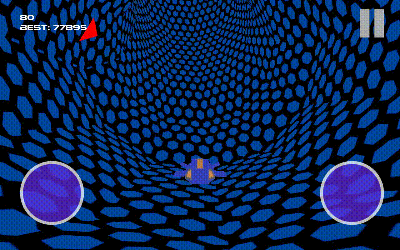 The major functional update for the game is the obstacle notifications feature seen in the gif. The notifications show up when an obstacle is close enough to the player. We knew this was a very much needed feature due to how fast the player moves, especially when going around blind corners. If a rocket comes around one of those corners, then BAM—there is no way the player can react fast enough to dodge it. Thus, the dire need for notifications.